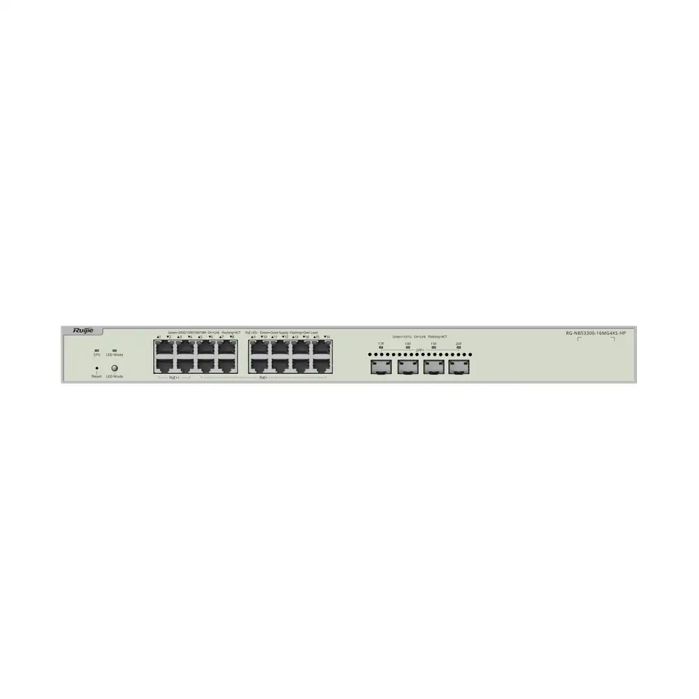 WhatsApp 查詢Reyee 16-Port Muti-Gigabit Layer 2 Managed Switch with 4 x PoE++ Ports, 12 x PoE+ Ports, and 4 x SFP+ Uplink Ports RG-NBS3300-16MG4XS-HP