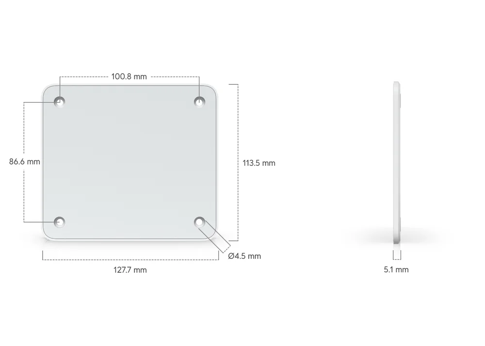 | Dimensions | 127.7 x 113.5 x 5.1 mm (5 x 4.5 x 0.2″) |