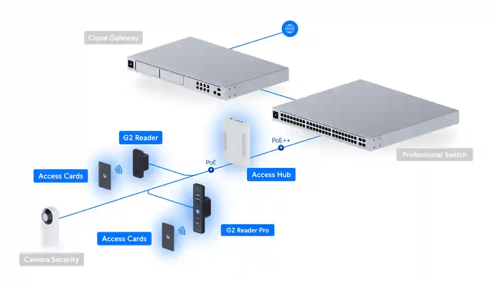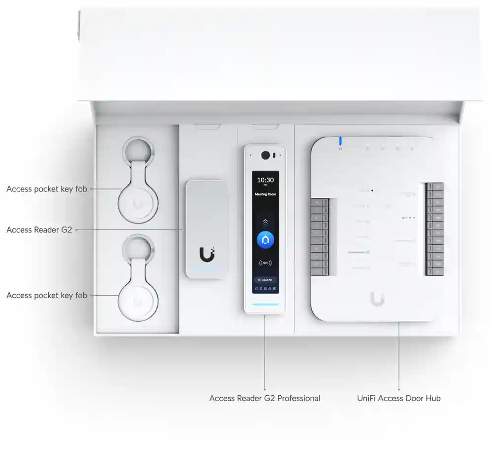 | In the Box | (1) Door Hub (1) G2 Reader Pro (1) G2 Reader (2) Pocket Keyfobs |