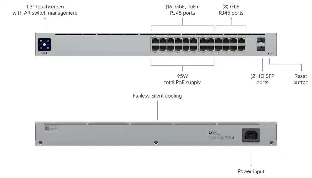 24 (16 PoE+) (1G/100M/10M) |